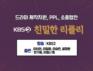 KBS2 일일드라마 친밀한 리플리 협찬 진행 중입니다.