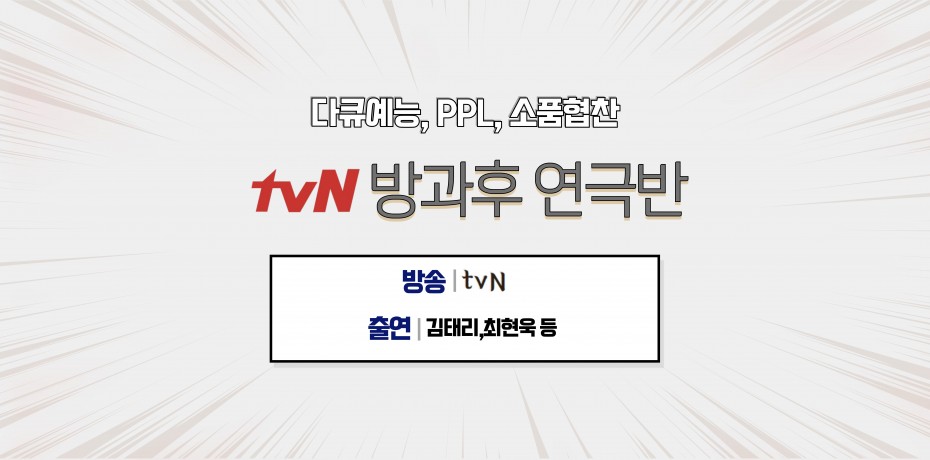 방송협찬 tvN 다큐예능 방과후 연극반 협찬 진행 중입니다.
